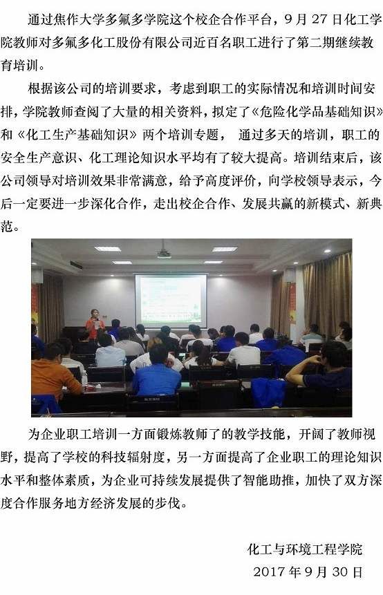 ok138cn太阳集团多氟多学院第二期技术培训班顺利展开