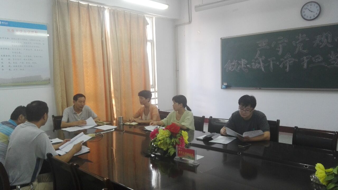 8月29日下午,太阳集团tyc138领导班子“严守党规党纪、做忠诚干净担当合格党员”专题民主生活会在博学楼2510举行。会议由党总支副书记辛小联主持,党总支全体班子成员参加会议,副院长行春丽列席了会议。