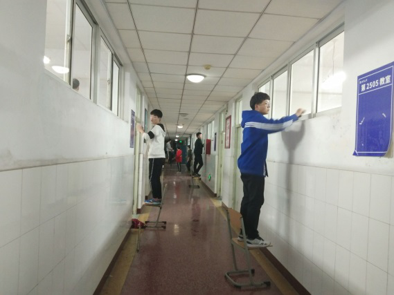 在辅导员燕兴海老师的带领下,全体学生会成员分为十个小组,分工协作,以极大的热情投入到卫生清理活动中,门窗、黑板、桌椅、棒管、电扇,每个角落都不放过。在整个劳动过程中,还不断有同学加入。