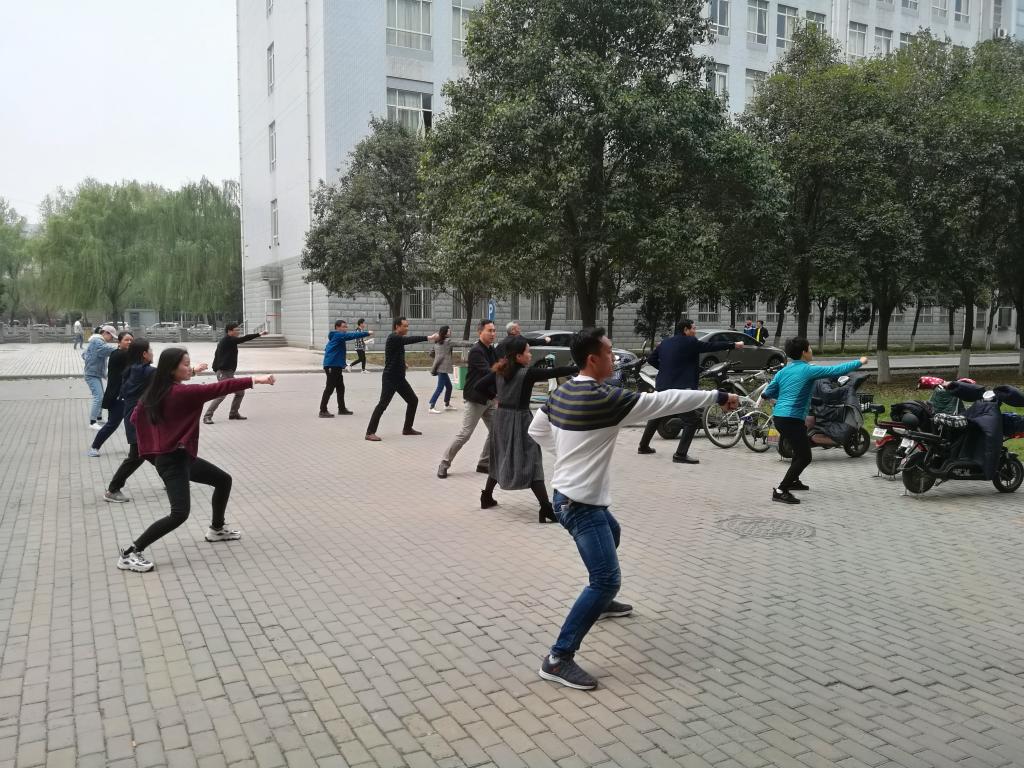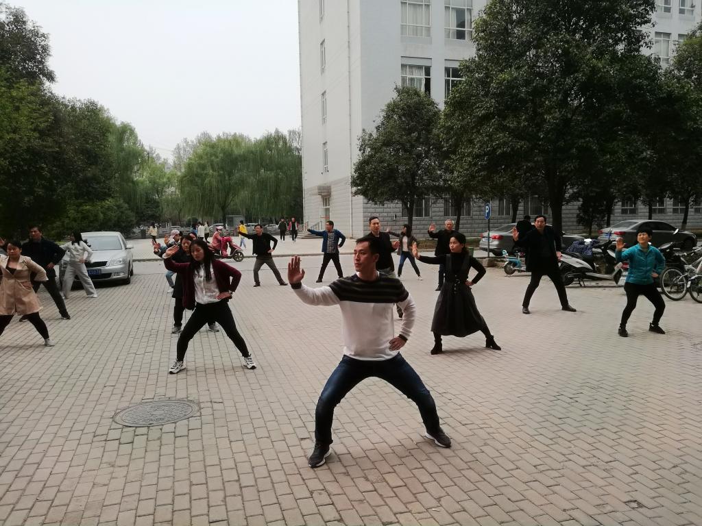 春光明媚,随着我校全民运动会的临近,太阳集团tyc138为活跃职工文化生活,增强教职工的身体素质,积极响应校工会号召,由学院工会牵头,坚持利用下午下班时间开展练习太极拳活动,在全学院掀起了练习太极拳活动的高潮。
