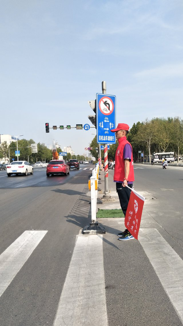 参加活动的志愿者于早上六点半就早早来到维护交通秩序的龙源湖公园北门字路口,协助交警指挥行人和车辆有序通行,制止随意闯红灯等不文明行为,保证行人的安全,减免交通事故的发生,同时也预防交通堵塞的发生。在活动中,志愿者们热心、积极、主动的志愿服务,得到了过往市民和交警的认可和赞扬,给予志愿者极大的鼓励,直到下午六点,本次交通志愿者服务活动才结束,虽然,师生们累点,但看到经过自己的努力有序顺畅的交通秩序,心里充满了幸福感。