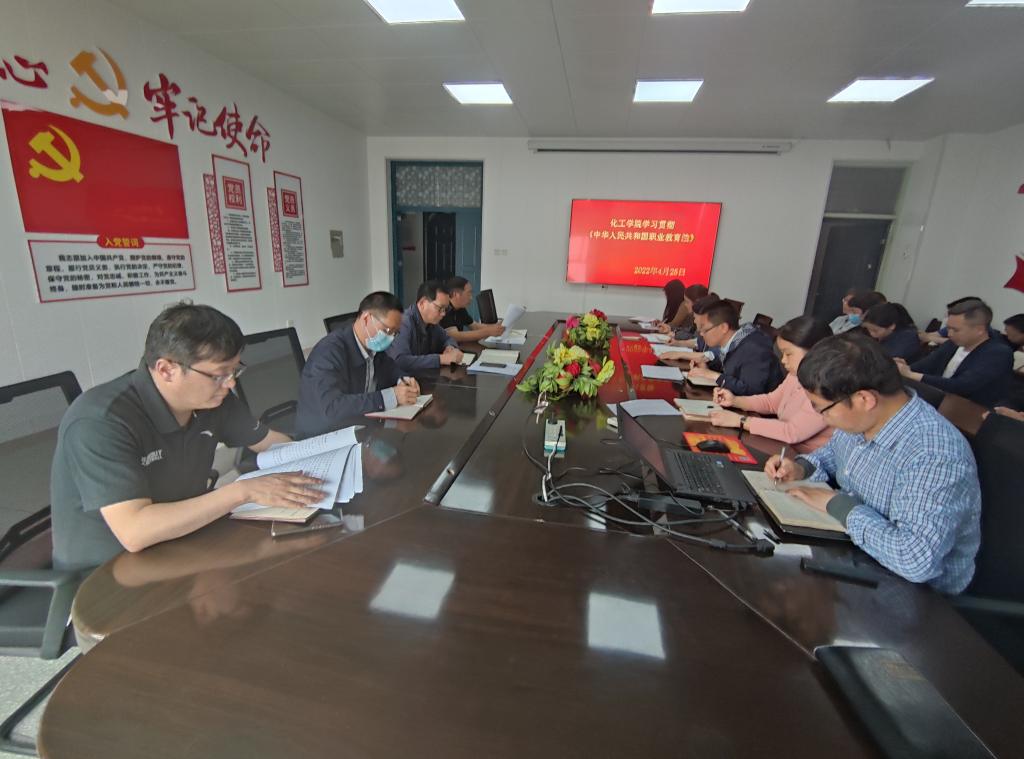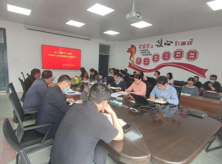 2022年4月25日,太阳集团tyc138在院会议室召开会议,学习贯彻《中华人民共和国职业教育法》,全体教职工参加了会议,会议由苏永祥院长主持。