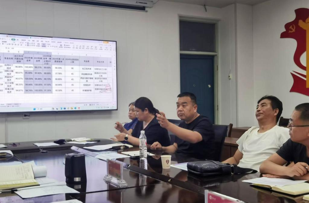为深入贯彻中共中央办公厅、国务院办公厅发布的《关于深化现代职业教育体系建设改革的意见》,并遵循省委省政府《关于深化河南省现代职业教育专业结构调整优化的实施意见》的指导方针,持续促进职业教育结构与产业结构的优化对接,以满足区域经济社会发展及产业转型升级对高素质技术技能型人才的需求。2024年9月9日,化学工程学院于学院会议室举办了精准服务产业发展与专业结构调整优化的双论证会议。会议由院长苏永祥主持,与会人员包括党总支书记胡鹏、副书记欧阳胜、副院长王拥军、副院长原东林、基层教研室主任王晓华、刘忠阳、杨雪梅、樊丽梅、教学办主任陈彦君、实验办主任原超毅以及企业代表多氟多人力资源部副部长张仲延等。