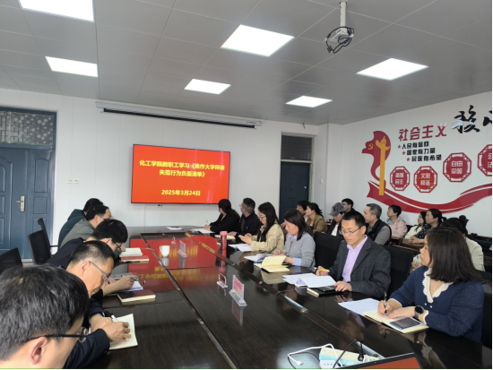 为进一步加强师德师风建设,提高教师职业道德水平,2025年3月24日化工与环境工程学院全体教师在学院会议室召开会议,学习《ok138cn太阳集团师德失范负面清单》。会议由院长苏永祥主持。
