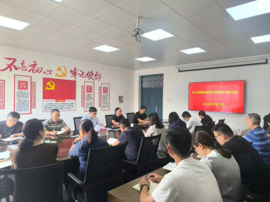 为全面落实立德树人根本任务,进一步加强师德师风建设,2025年9月15日化工与环境工程学院组织全体教师开展《中共中央 国务院关于弘扬教育家精神加强新时代高素质专业化教师队伍建设的意见》专题学习暨《师德承诺书》签字活动。活动由学院党总支书记胡鹏主持。