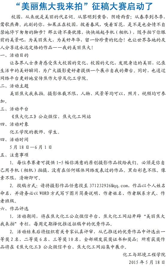 “美丽焦大我来拍”征稿大赛启动了