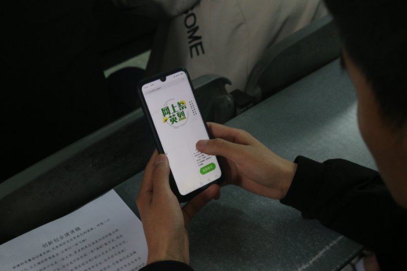 参会的同学们扫码进入焦作文明网祭英烈献花留言,全部同学参与进行网上祭拜,并且仰望英雄纪念碑,先烈精神长存不忘。