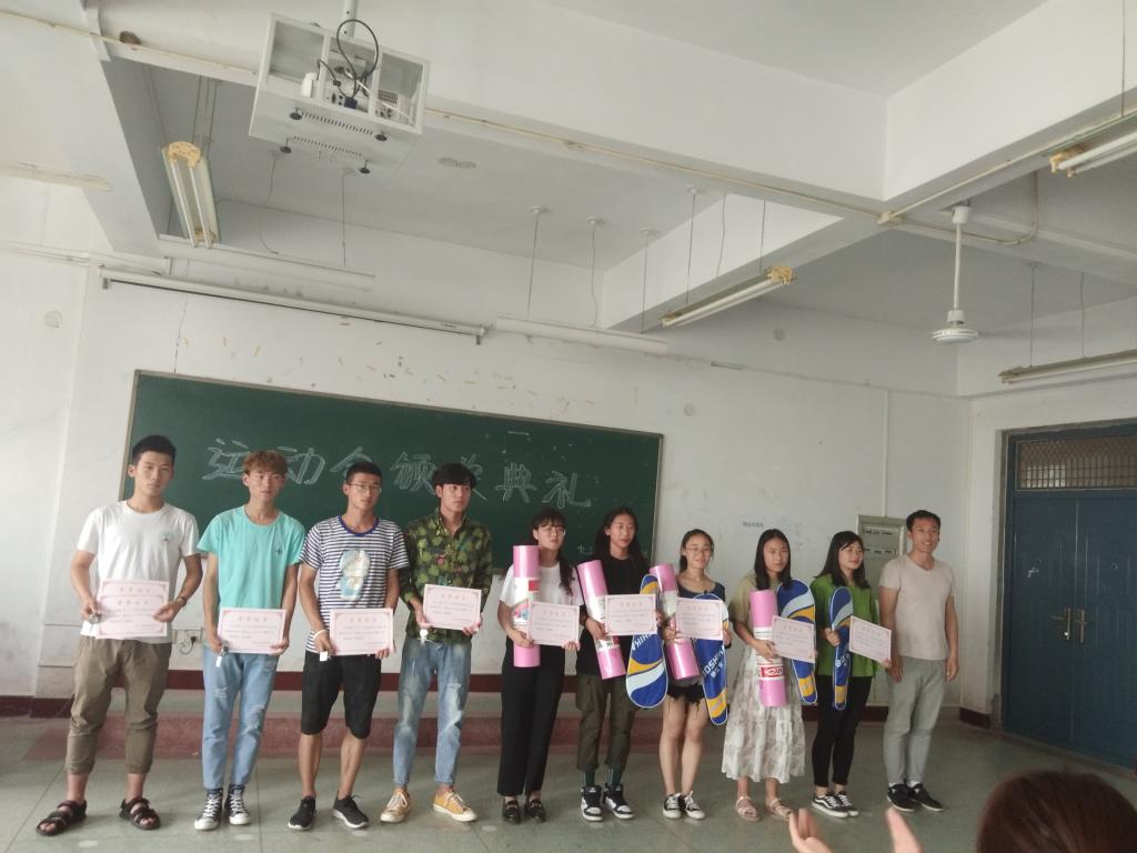 党总支副书记辛小联对同学们在运动会上所取得的优异成绩表示祝贺,对所有参与运动会的师生表示感谢,对运动会期间运动员们表现出的努力拼搏,,力争上游精神提出表扬。鼓励同学们在以后的学习中要发扬赛场上的拼搏精神,努力学习,练好本领。学工办主任何芳鼓励大家应积极参加院系活动,把大学生活过得更加精彩。团总支书记燕兴海要求大家在努力学习的同时,还要积极锻炼身体,争取在下届运动会上取得更加好的成绩。随后,为运动会中取得成绩的运动员颁发证书、奖品,并与运动员们合影留念。