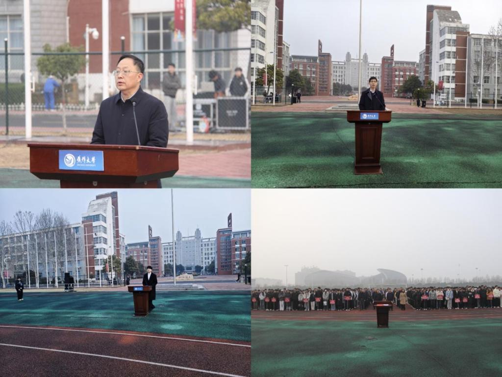 升旗仪式结束后,学校党委书记汪诗怀发表重要讲话,他寄语全体师生,新学期既是新起点,也是新挑战。希望老师们坚守育人初心、潜心治学;以实干实绩书写无愧于时代的青春答卷。学生代表发言,他结合专业特色,号召全体化工学子将爱国情、强国志、报国行融入日常学习与科研实践,在青春赛道上奋力奔跑。