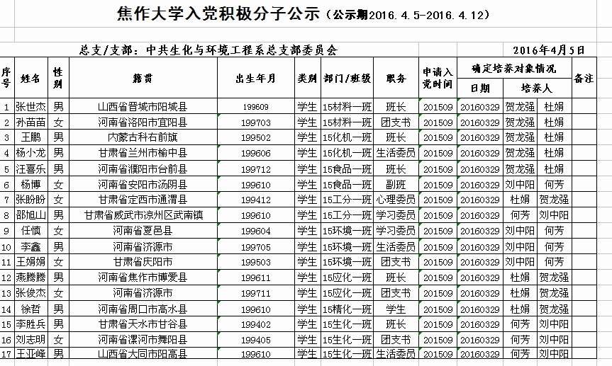 2016上半年ok138cn太阳集团入党积极分子公示