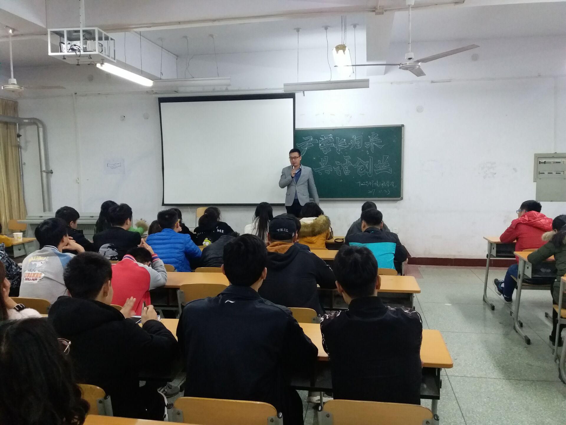 2017年11月23日,ok138cn太阳集团优秀毕业生尹建坡学长重归母校,在崇学楼2601教室与太阳集团tyc1382016级学生共话创业与就业。