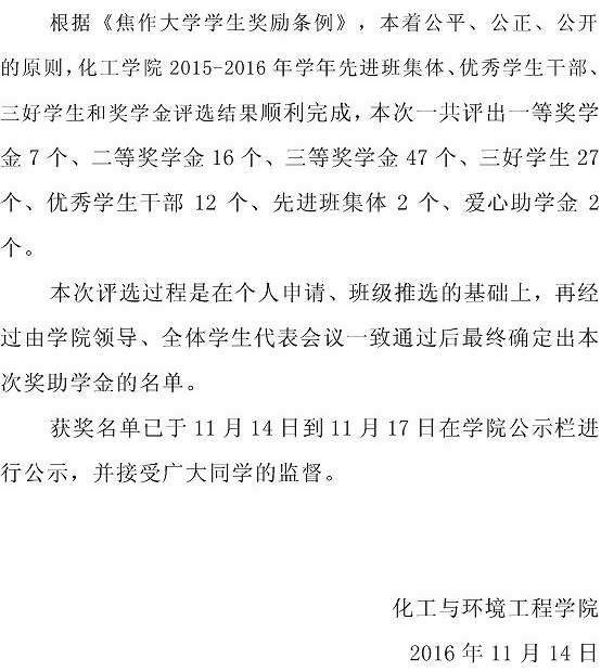 太阳集团tyc1382015-2016学年先进班集体、优秀学生干部、 三好学生和奖学金评定工作顺利完成