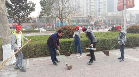 3月19日下午,我院八十余名青年志愿者按照团市委、校团委关于“青春洁城”活动的要求来到人民路丹尼斯附近进行义务劳动。