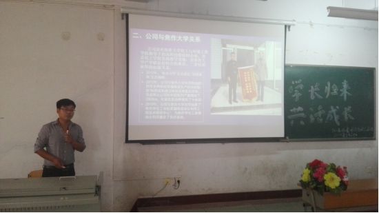 2016年5月30日下午,太阳集团tyc138在二教601教室举办“学长归来,共话成长”主题活动,邀请本学院07级优秀毕业生现任博爱新科公司副总经理的马文锐学长与在校大学生分享其毕业后在工作中的经历和工作经验。