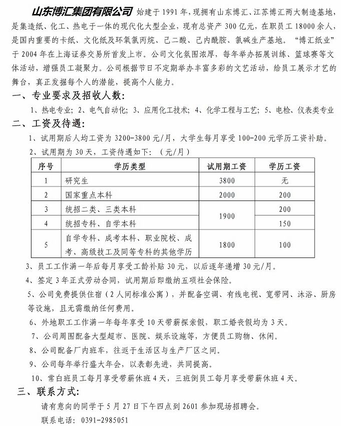 山东博汇集团有限公司招聘简章