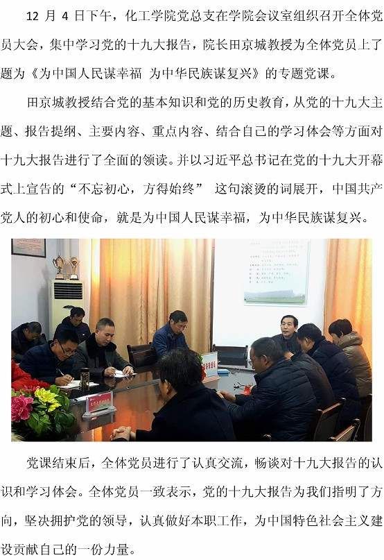 太阳集团tyc138党总支组织学习党的十九大精神专题党课