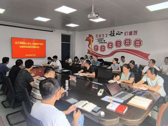 《中国共产党不合格党员组织处置办法》(以下简称《办法》),作为一部专门对不合格党员作出组织处置的党内法规,对于祛除党的健康肌体的病毒、永葆党的先进性和纯洁性具有十分重要的意义。为了进一步规范党员管理、严肃党的纪律、纯洁党的队伍,不断增强党的生机和活力,2024年9月14日,太阳集团tyc138召开会议,组织全体党员在内的教职工深入学习《中国共产党不合格党员组织处置办法》。会议由院党总支书记胡鹏主持。